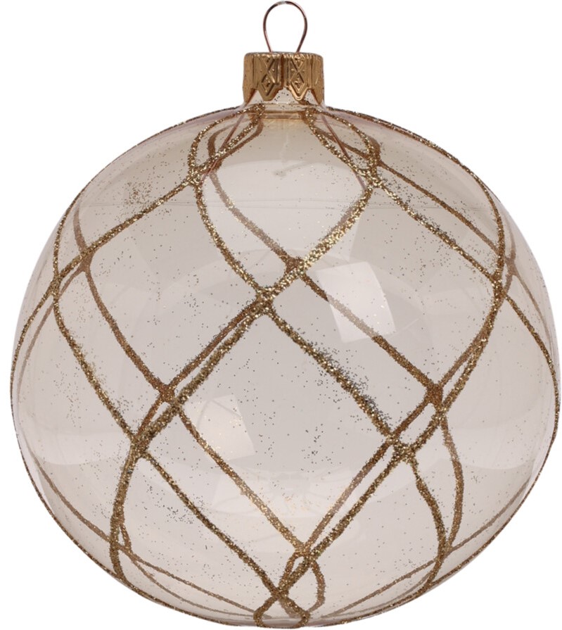 Przezroczysta szklana bombka w brokatowe wzory to elegancka i stylowa dekoracja, która doskonale sprawdzi się w świątecznym wystroju. Jej delikatny wygląd i błyszczące akcenty wprowadzają do wnętrza magię i przytulność, czyniąc ją idealnym dodatkiem do bożonarodzeniowych aranżacji.