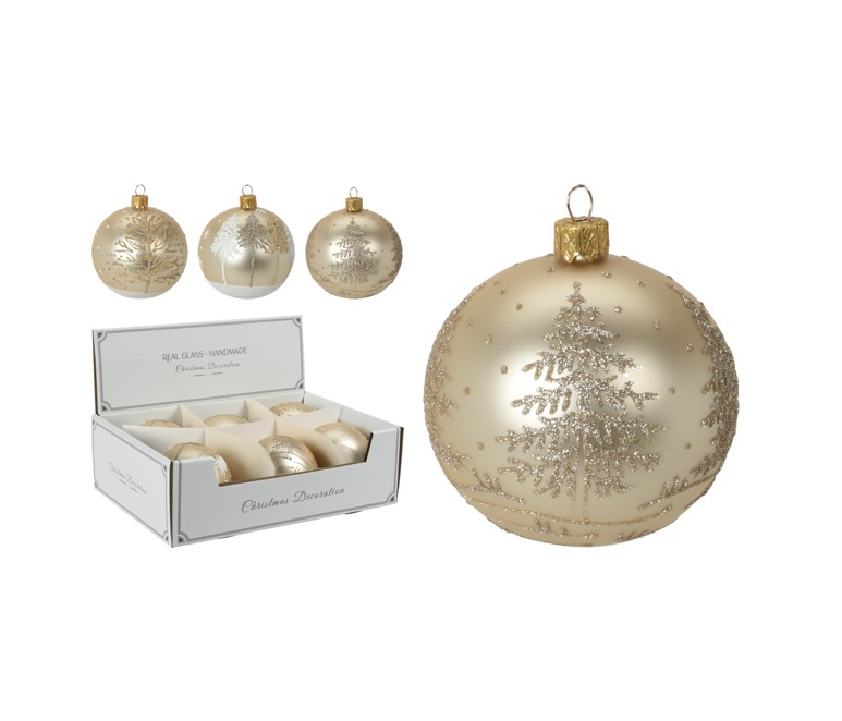 Matowa perłowo-złota bombka w brokatowe wzory to stylowy i elegancki dodatek, który wzbogaci każdą świąteczną aranżację. Jej wyjątkowy design, połączenie matowego wykończenia z błyszczącymi detalami oraz trwałość sprawiają, że jest to doskonały wybór zarówno na Boże Narodzenie, jak i na inne okazje, które wymagają odrobiny blasku i magii.