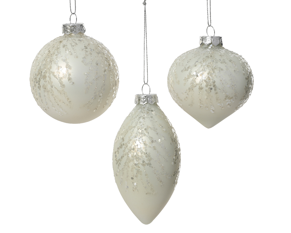 Bombki szklane Extra Matt w srebrne cekiny – 8 cm (3 wzory do wyboru)