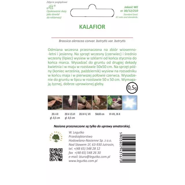 🥦 Kalafior EARLY SNOWBALL – Nasiona 1 g | W. Legutko