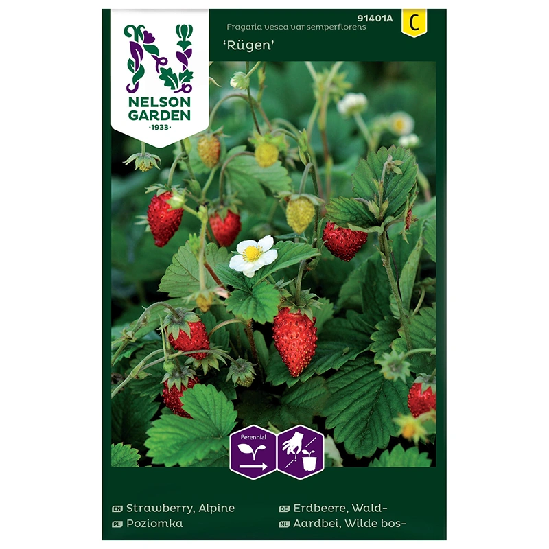 Poziomka 'Rügen’ to obficie owocująca odmiana bez wąsów rozłogowych, dająca duże, czerwone i aromatyczne owoce. Idealna do spożycia na świeżo, deserów, wypieków, a także jako dekoracyjny element rabat ogrodowych. Roślina wymaga wcześniejszego przygotowania rozsady, co gwarantuje bujny i obfity plon latem.