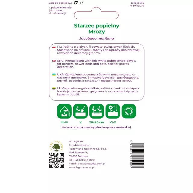 Starzec mrozy popielny 0,2 g – ozdobne srebrzyste liście do ogrodu i balkonu 🌿